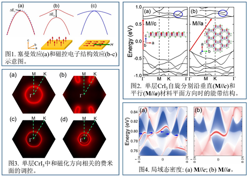 施加外磁场可以调控磁性材料的电极化、光偏振、温度、几何形状等宏观物性,即实现磁电、磁光、磁热、磁弹等效应。这些效应是构成磁性功能器件如磁探测仪、磁光克尔仪、磁制冷机等的物理基础。考虑到材料的宏观物性与微观电子结构存在密切关系,最直观的想法是通过磁场直接调控电子能带结构,从而改变材料的电学及光学等特性。在外磁场的作用下,原本简并的电子自旋态会产生塞曼能级劈裂。然而这是一个微小的能量量级,如1特斯拉的巨大磁场(约地磁场的三万倍)只能产生 的微小能级劈裂,远小于室温下的热涨落 ,因此无法用于器件设计及应用。